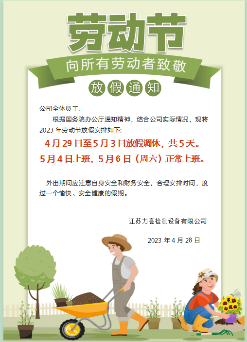 江蘇力高檢測設(shè)備有限公司五一勞動節(jié)放假通知